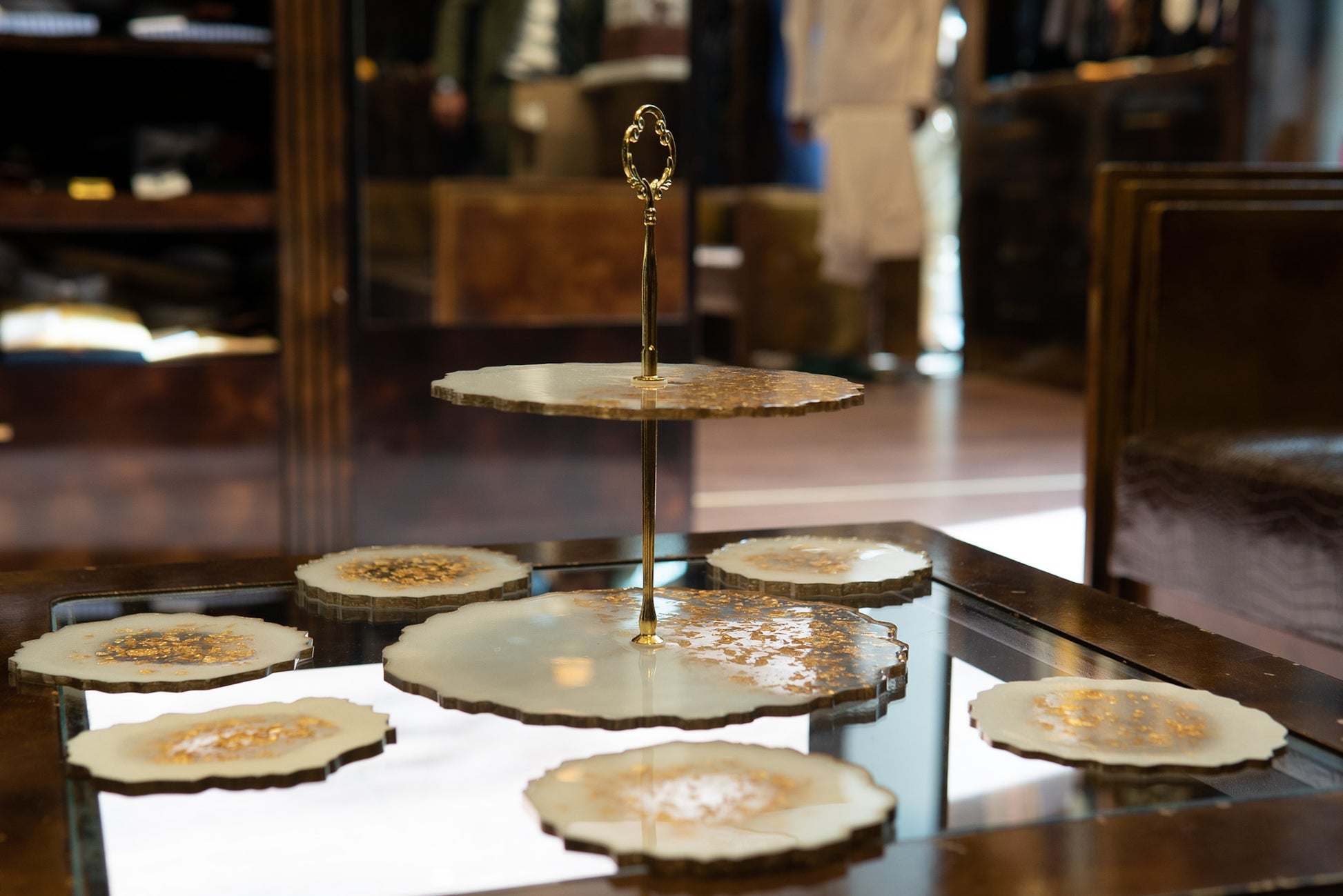 Die Unterseite ist mit transparenten Gummipuffern ausgestattet, sodass das Etagere auf jedem Untergrund stabil stehen können.